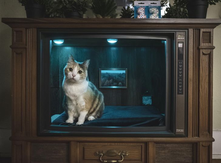 8. To nie serial o kotach, lecz kreatywne kocie legowisko przerobione ze starego telewizora.