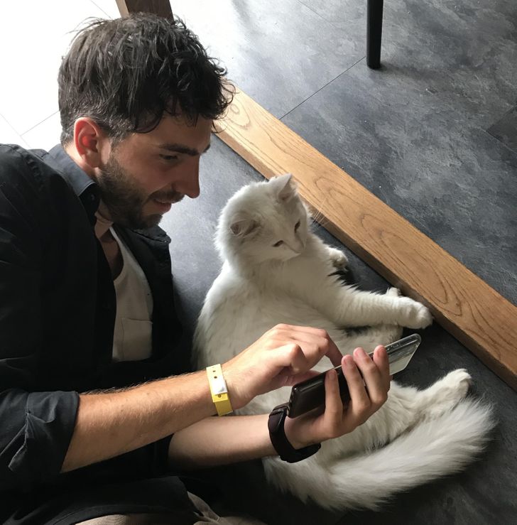 13. Jak myślicie, co ten pan pokazuje swojemu kotu?