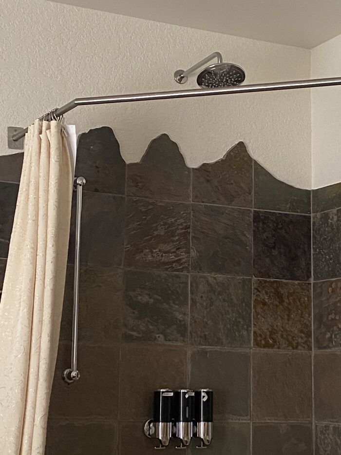 33. W hotelu w pewnej górskiej miejscowości kafelki pod prysznicem są wycięte w kształcie gór.