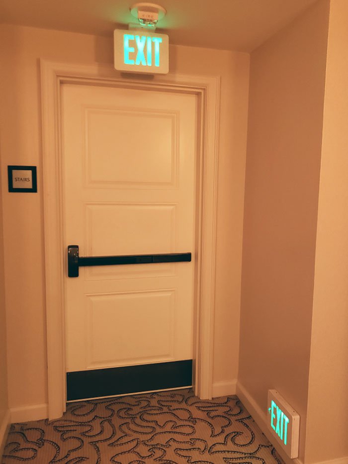 12. „Mój hotel miał wyjścia ewakuacyjne w pobliżu podłogi, prawdopodobnie dla tych, którzy czołgają się, aby uniknąć wdychania dymu podczas pożaru.”