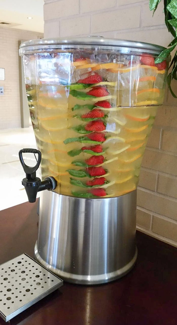 30. Ten hotel ma wyjątkowo fantazyjny styl układania owoców w wodzie.