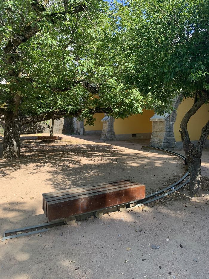 6. Pod ławkami w tym parku umieszczono szyny, żeby zawsze można było pozostać w cieniu.