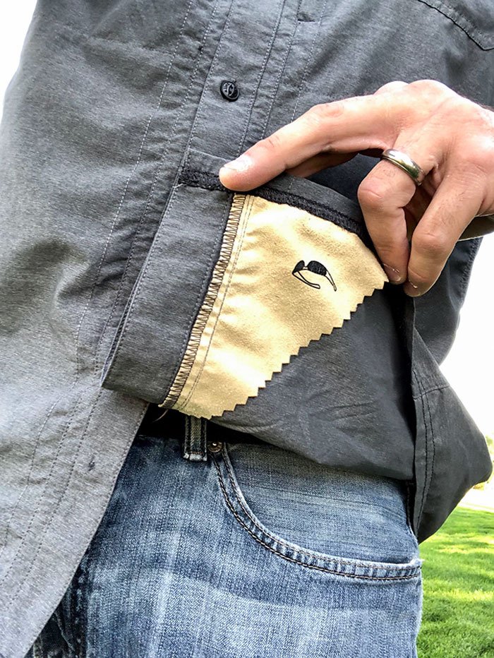 16. Ta koszula ma kawałek ściereczki do czyszczenia okularów wszyty po wewnętrznej stronie.