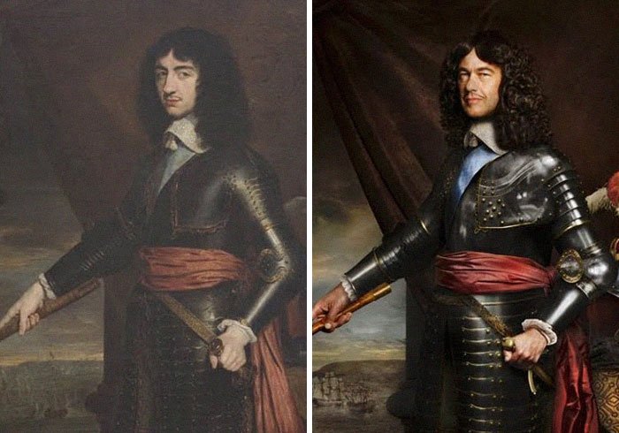 8. Karol II (z lewej, 1653 r.) i jego 9-krotny prawnuk Lord Charles Fitzroy (z prawej).