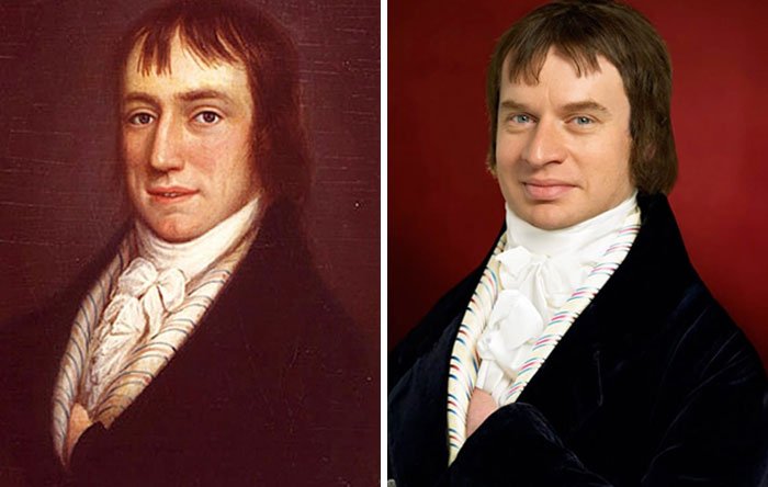 11. William Wordsworth (z lewej, 1798 r.) i jego praprawnuk Andtom Wontner (z prawej).