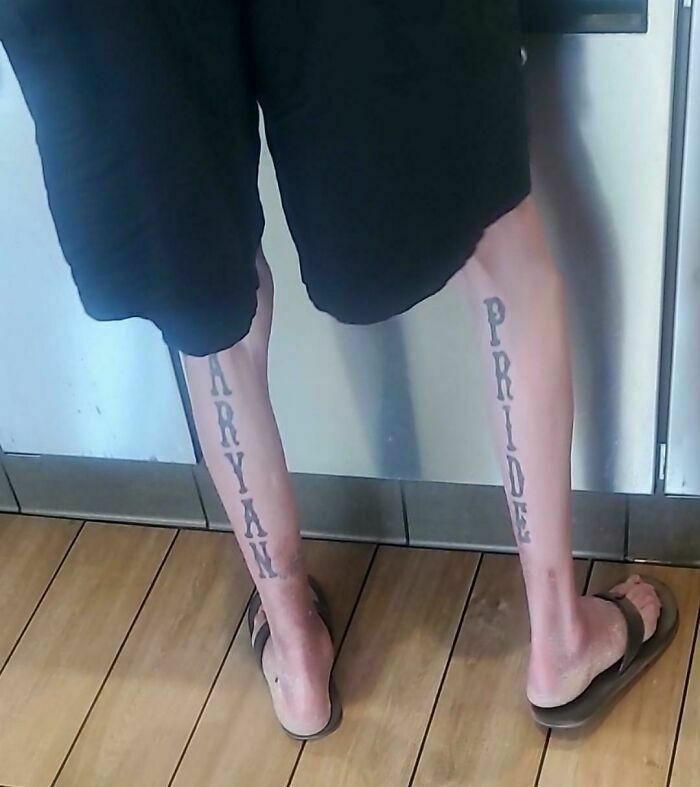 17. „Widziałem tego głupka w lokalnym McDonald’s” (napis oznacza: „Aryjska duma”).